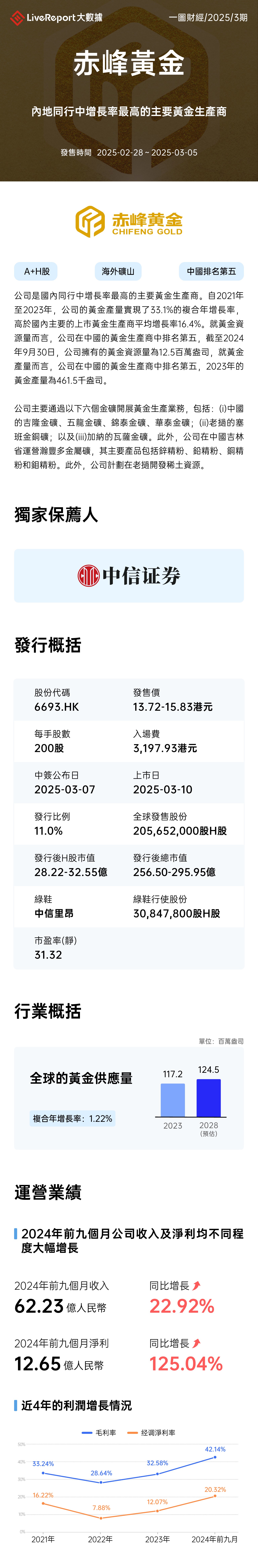 【一圖新股】2025第3期:赤峰黃金-內地同行中增長率最高的主要黃金生產商