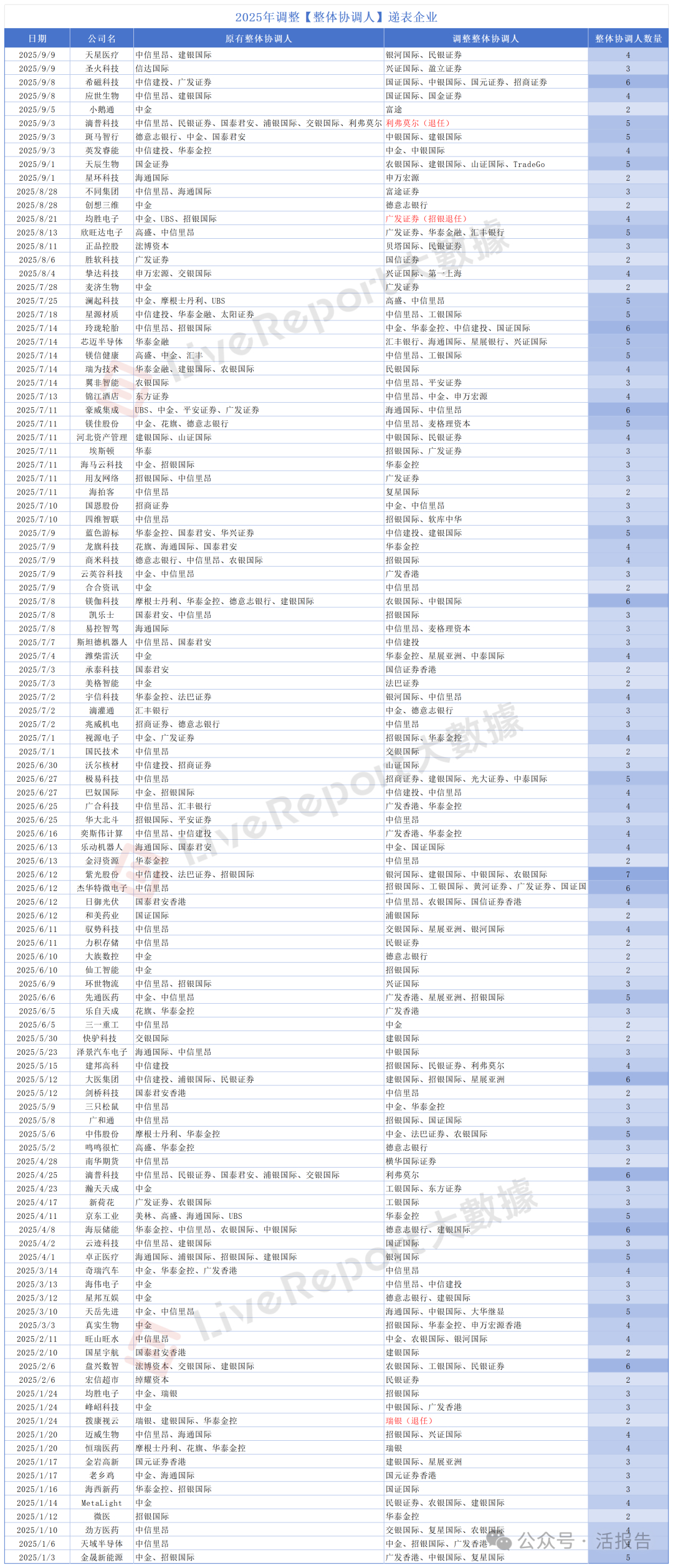 據LiveReport大數據統計,截至9月10日,今年已有111家遞表企業調整整體協調人,數量已達去年兩倍。