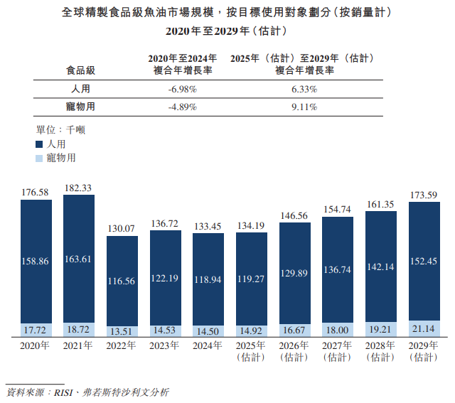 2025年10月20日,禹王生物首次向港交所遞交招股書,擬在香港主板上市,聯席保薦人為招銀國際、建銀國際。公司是全球最大的食品級精制魚油及其制品供貨商,2025年上半年收入3.43億元,凈利潤0.23億元,毛利率20.74%。LiveReport獲悉,禹王生物營養有限公司Yuwang BioNutrition Limited(簡稱“禹王生物”)于2025年10月20日在港交所遞交上市申請,擬在香港主板上市。這是該公司第1次遞表。公司是全球最大的食品級精制魚油及其制品供貨商,致力于成為營養健康領域的全球領導者。根據弗若斯特沙利文的資料,以2024年食品級精制魚油及其制品銷量計,公司是全球最大的食品級精制魚油供貨商,市場份額為8.1%。作為行業先驅,公司是中國首批實現食品級魚油工業化規模生產及生產醫藥級魚油的企業之一。作為中國脂質專業委員會的理事單位,公司主導制定多項魚油及其制品的國家行業標準,包括《保健食品功能食品原料目錄-魚油》及《SC 3503-2000多烯魚油水產制品》。于1999年,公司獲中國國家經濟貿易委員會批準成為DHA及EPA標準品生產商,成為首家獲此批準的企業。公司的主要業務是開發、生產和銷售(i)精制魚油;(ii)魚油軟膠囊和其他膳食補充劑產品,包括CDMO和品牌膳食補充劑產品及(iii)藥品及其他。公司提供多種以魚油為主的產品,包括(i)根據客戶要求提供不同EPA和DHA純度及比例的精制魚油;(ii)超過3,000種魚油軟膠囊和其他膳食補充劑產品;及(iii)藥品及其他。精制魚油、魚油軟膠囊及其他膳食補充劑產品是其核心產品線。截至2024年12月31日止3個年度、2024年及2025年前6個月:收入分別約為人民幣5.34億、6.61億、8.32億、4.70億、3.43億,2025年前6月同比-27.13%;毛利分別約為人民幣1.36億、1.85億、2.16億、1.39億、0.71億,2025年前6月同比-48.92%;凈利分別約為人民幣0.67億、1.02億、1.25億、0.88億、0.23億,2025年前6月同比-74.01%;毛利率分別約為25.43%、28.06%、25.98%、29.58%、20.74%;凈利率分別約為12.59%、15.41%、15.06%、18.62%、6.64%。根據弗若斯特沙利文(Frost & Sullivan)的報告,到2024年底,食品級魚油的全球市場規模達到約133.45千噸。2020年至2024年的復合年增長率為-6.76%。到2029年底,食品級魚油的市場規模預計將達到173.59千噸,2025年至2029年的復合年增長率為6.65%。按2024年食品級精制魚油及其制品銷量計算,公司是全球最大的食品級精制魚油生產商,銷量達到10,900噸,市占率為8.12%。按分別于2022年、2023年及2024年的魚油軟膠囊年銷量計,公司在該等年度各年名列中國魚油產品行業首位,并連續三年保持行業銷量第一的位置。董事會由七名董事組成,包括兩名執行董事、兩名非執行董事及三名獨立非執行董事。劉汝萃先生及其控制的實體(惟微投資、傳奇投資及LRC Holding Limited)合計持股56.0%;Bayland Health通過Velantra持股15.00%。在2025年8月的上市前融資中,公司的投后估值約為1.29億美元(10億港元)。據LiveReport大數據統計,禹王生物中介團隊共計9家,其中保薦人2家,近10家保薦項目數據表現優秀;公司律師共計2家,綜合項目數據表現一般。整體而言中介團隊歷史數據表現有待改進。(本文首發于活報告公眾號,ID:livereport)