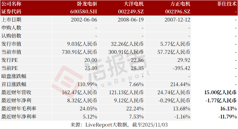 2025年10月31日,菲仕技術首次向港交所遞交招股書,擬在香港主板上市,獨家保薦人中金公司。公司是中國領先、全球布局的電驅動解決方案供應商,2025年上半年收入9.09億元,凈虧損0.21億元,毛利率14.64%。LiveReport獲悉,寧波菲仕技術股份有限公司Ningbo Physis Technology Co., Ltd.(簡稱“菲仕技術”)于2025年10月31日在港交所遞交上市申請,擬在香港主板上市。這是該公司第1次遞表。公司是中國領先、全球布局的電驅動解決方案供應商,提供綜合及定制化的電驅動系統及解決方案,為全球多元化的應用場景提供動力。公司的產品及解決方案具有高精度、高效率、大扭矩的特點,并已廣泛應用于多個基礎工業領域。于往績記錄期間,公司的電驅動解決方案已廣泛應用于兩大核心領域:工業控制及新能源汽車。以2024年的銷售收入計,公司是中國工業控制領域第二大專用電驅動解決方案供應商;以2024年的銷量計,公司亦為中國第六大乘用車電驅動系統的第三方供應商。截至2024年12月31日止3個年度、2024年及2025年前6個月:收入分別約為人民幣13.76億、12.43億、15.00億、5.76億、9.09億,2025年前6月同比+57.98%;毛利分別約為人民幣1.14億、1.77億、2.42億、0.98億、1.33億,2025年前6月同比+35.69%;研發分別約為人民幣-0.97億、-1.20億、-1.21億、-0.62億、-0.66億,2025年前6月同比+6.68%;凈利分別約為人民幣-1.30億、-1.12億、-1.77億、-0.44億、-0.21億,2025年前6月同比-51.53%;毛利率分別約為8.29%、14.26%、16.13%、17.04%、14.64%;研發費用率分別約為7.05%、9.67%、8.07%、10.74%、7.25%;凈利率分別約為-9.45%、-9.03%、-11.79%、-7.62%、-2.34%。同行業IPO可比公司:臥龍電驅、大洋電機、方正電機董事會現由十名董事組成,包括四名執行董事、兩名非執行董事及四名獨立非執行董事。京津冀基金、先進制造、先進制造二期基金各持股11.79%、8.08%、5.00%;其他投資者還包括匯嘉匯金、新動能產投&通商創投、疌泉美都、深圳賽富、興證賽富&興證賽富一、黃山賽富&廈門賽富等。公司上市前經歷了多輪融資。在2024年1月的C輪最新融資中,公司的投后估值約為40.02億人民幣。據LiveReport大數據統計,菲仕技術中介團隊共7家,其中保薦人1家,近10家保薦項目數據表現優異;公司律師共計2家,綜合項目數據表現尚可接受。整體而言中介團隊表現中規中矩。(本文首發于活報告公眾號,ID:livereport)