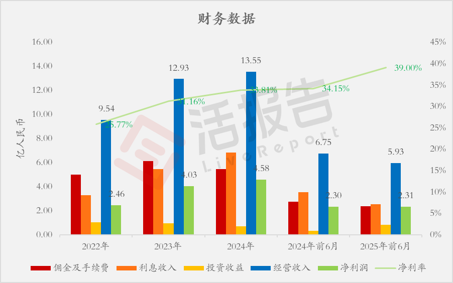 公司是中國領先的期貨公司,2025年上半年經營收入5.93億元,凈利潤2.31億元,凈利率達39%。