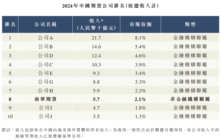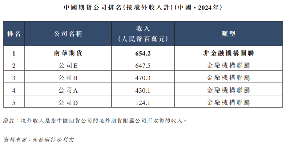 2024年,就中國期貨公司的境外收入而言,公司在所有期貨公司中排名第一。