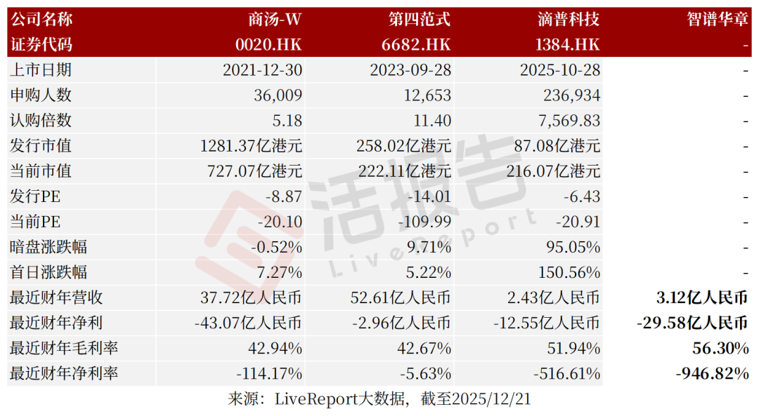 2025年12月19日,智譜通過港交所聆訊,擬在香港主板上市,獨家保薦人為中金。公司是中國領先的人工智能公司,2024年收入3.12億元,同比增長一倍,凈虧損29.58億元,同比擴大兩倍,毛利率56.30%;2025年上半年收入1.91億元,同比增長三倍,凈虧損23.58億元,同比擴大九成,毛利率49.99%。LiveReport獲悉,北京智譜華章科技股份有限公司Knowledge Atlas Technology Joint Stock Company Limited(簡稱“智譜”)于2025年12月9日通過港交所聆訊,擬在香港主板上市。公司是中國領先的人工智能公司,致力于開發先進的通用大模型。2021年,公司發布了中國首個專有預訓練大模型框架GLM框架,并推出了公司的模型即服務(MaaS)產品開發及商業化平臺,通過該平臺提供公司的大模型服務。2022年,公司開源首個1000億規模的模型(GLM-130B)。公司運營于大語言模型(LLM)市場,其為更廣泛AI市場的一個細分領域。公司為機構客戶(包括私營企業及公共行業實體)及個人用戶(包括個人終端用戶及獨立開發者)提供通用大模型服務。截至2025年6月30日,公司的模型已為逾八千家機構客戶提供支持,截至最后實際可行日期,已為約8000萬臺設備提供支持。根據弗若斯特沙利文的資料,按2024年的收入計,公司在中國獨立通用大模型開發商中位列第一,在所有通用大模型開發商中位列第二,市場份額為6.6%。公司的MaaS平臺主要提供四類模型:語言模型、多模態模型、智能體模型及代碼模型,以及用于模型微調、部署及智能體開發的集成工具。公司MaaS平臺的主要優勢為模型能力全面覆蓋、應用場景廣泛擴展性及多元化算力基礎設施適應性。公司的MaaS平臺包含以下三個層級:全面的模型組合、可擴展的應用、便捷的基礎設施適應性。公司的AI模型可分為三個相應類別:反思及沉思模型、多模態模型及智能體模型。GLM-4.5為公司的旗艦基座模型,發布時即已開源。該模型亦支持多模態擴展與大語境處理功能,可解讀高階提示詞并自主生成實用型解決方案。GLM-4.5的模型參數規模達3550億,同時公司亦研發出輕量級版本GLM-4.5-Air,其參數規模為1060億。根據弗若斯特沙利文的資料,GLM-4.5取得以下領先地位:・基準測試。依據2025年7月進行的12項業界標準基準測試的評估結果,GLM-4.5在全球排名第三、在中國躍居第一及全球開源模型位居榜首。・全球排行榜。2025年9月,GLM-4.5在Chatbot Arena及WebDev Arena全球排行榜中位列第五,上述排行榜均為業界公認的全球排行榜,分別對大模型的整體功能及編碼功能進行排名。・Token消耗量。自GLM-4.5發布及直至最后實際可行日期,公司在OpenRouter(一家提供各類大模型API訪問權限的全球領先平臺)上的token消耗量持續居于全球前十及中國前三。・人氣排名。在首發后僅48小時內,GLM-4.5便躍居Hugging Face(全球最大開源模型平臺)熱門榜上全球榜首。・幻覺率。2025年9月,根據檢索增強生成(RAG)領域的LLM幻覺排行榜,GLM-4.5的幻覺率為全球第二低及中國最低。2025年9月,公司發布GLM-4.6。2025年11月,GLM-4.6于CodeArena上位列全球第一,該平臺是業界最新公認、專為評測模型編碼能力而設計的全球性評估系統。截至2023年12月31日止3個年度、2023年及2024年前6個月:收入分別約為人民幣0.57億、1.25億、3.12億、0.45億、1.91億,2025年前6月同比+325.03%;毛利分別約為人民幣0.31億、0.80億、1.76億、0.22億、0.95億,2025年前6月同比+334.56%;凈利分別約為人民幣-1.44億、-7.88億、-29.58億、-12.36億、-23.58億,2025年前6月同比+90.83%;毛利率分別約為54.63%、64.62%、56.30%、48.90%、49.99%;凈利率分別約為-250.22%、-632.70%、-946.82%、-2751.23%、-1235.27%。公司過去兩年收入與毛利實現大幅增長;凈利潤方面,從2023年凈虧損7.88億元,擴大至2024年凈虧損29.58億元,主要因研發及市場拓展相關開支增加。公司收入主要來自通過MaaS平臺提供的大模型服務,重大部分來自本地化部署服務,2023年和2024年占總營收比例分別為90.4%和84.5%;云端部署服務獲得的收入比例相對較小,2023年占比9.6%,2024年占比15.5%,雖有提升但仍低于本地化部署。截至2025年6月30日,公司經營活動現金流為-13.3億,期末現金約為25.5億。據弗若斯特沙利文(Frost& Sullivan)的資料,按收入計,2024年中國大語言模型市場規模已達到人民幣53億元,預計到2030年該市場規模將增至人民幣1011億元,2024年至2030年的復合年增長率為63.5%。按2024年收入計,公司是中國最大的獨立大語言模型廠商及第二大大語言模型廠商。同行業IPO可比公司:商湯-W、第四范式、滴普科技。智譜的董事會由九名董事組成,包括三名執行董事、三名非執行董事及三名獨立非執行董事。劉德兵博士及其控制的北京鏈湃、慧惠、智登,連同唐杰博士、李涓子博士、許斌博士、張鵬博士,為一致行動人,合計持股約33.03%。資深獨立投資者包括君聯資本(持股6.73%)、美團(3690.HK)(持股4.27%)、啟明創投(持股2.49%);其他投資者包括星連肇基及通智投資、螞蟻集團、海河富新優達基金、華控技術、Capital Today Evergreen Fund、達晨財智資本、華控資本、中關村科學城、珠海華發、智慧領航、人工智能基金、騰訊投資、多項網絡、中科創星、北京順贏等。公司上市前經歷了多輪融資,累計融資83.6億元人民幣。在2025年5月的B6輪最新融資中,公司的投后估值約為243.8億人民幣。據LiveReport大數據統計,智譜中介團隊共計9家,其中保薦人1家,近10家保薦項目數據表現不理想;公司律師共計3家,綜合項目數據表現穩