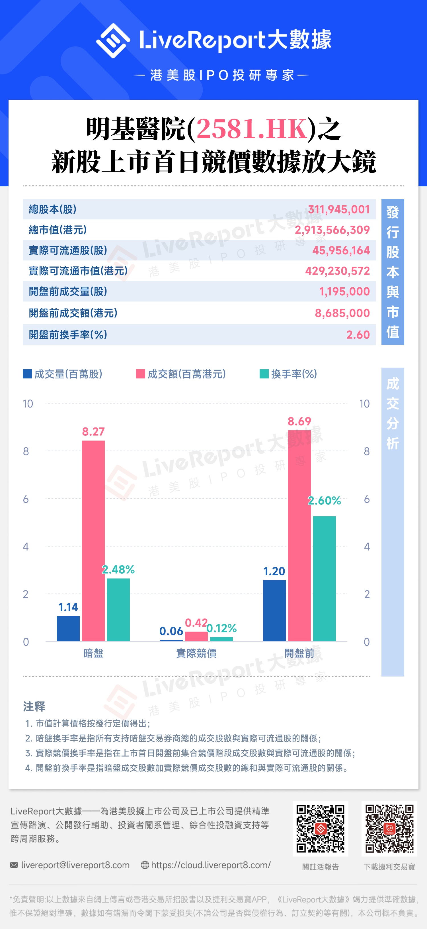明基醫院(02581.HK)之新股上市首日競價數據放大鏡