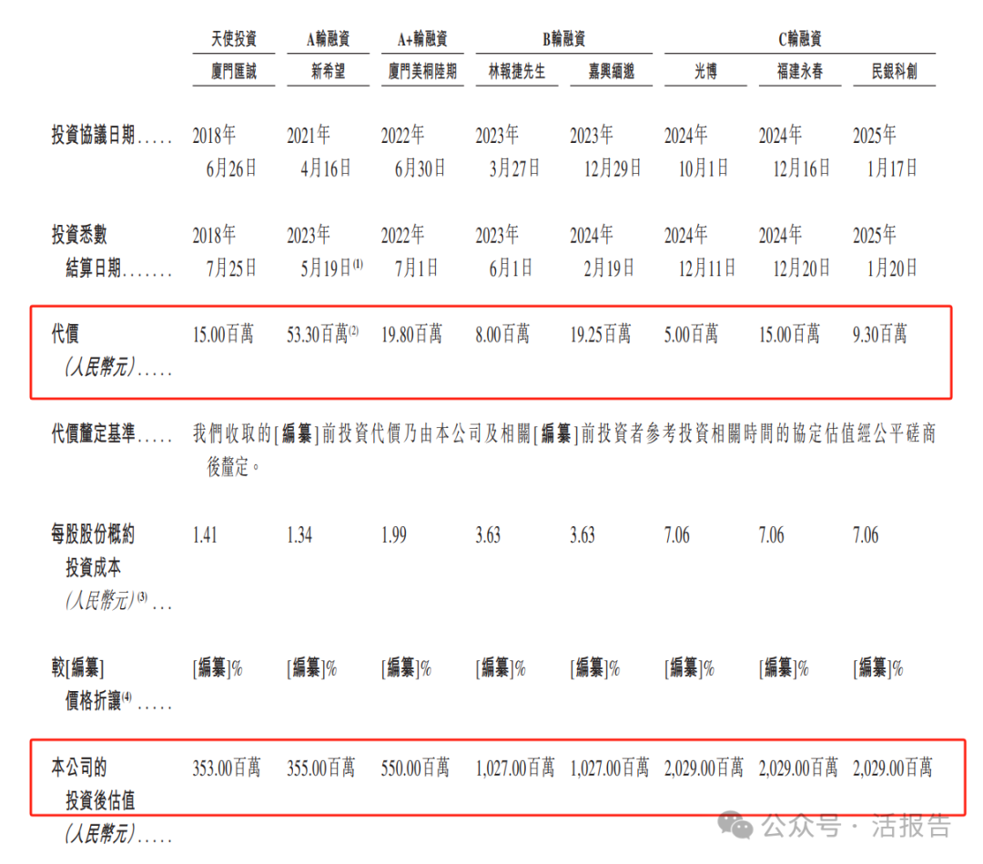 截至2025年6月30日,公司上半年經營現金流為0.03億,賬上現金0.93億。公司董事會由八名董事組成,包括兩名執行董事、三名非執行董事及三名獨立非執行董事。一致行動人涂錦波先生、曾建華先生、蘇偉達先生、黃嘉恩先生、廈門眾嘉秀、福建合力合美及白鴿同創合共持股約55.58%;股權激勵平臺與錦同行持股2.64%;格汭廈門、廈門富國豪分別持股9.27%、11.22%;其他股東合計持股7.42%。公司共計進行過五輪融資。在2024年12月的C輪融資中,公司的投后估值約20.29億人民幣。據LiveReport大數據統計,白鴿在線中介團隊共7家,其中保薦人2家,近10家保薦項目數據表現中等偏上;公司律師共計1家,綜合項目數據表現一般。整體而言中介團隊表現中規中矩。