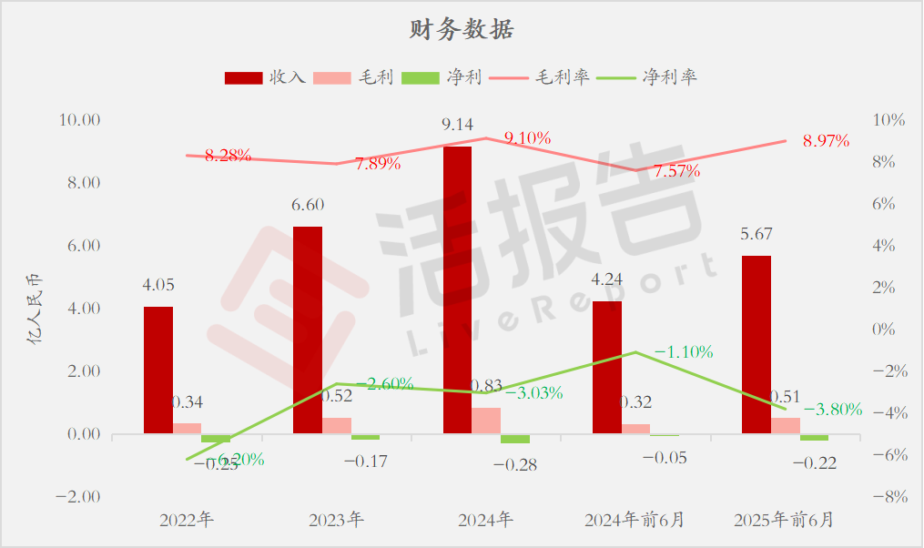 凈利分別約為人民幣-0.25億、-0.17億、-0.28億、-0.05億、-0.22億,2025年前6月同比+363.33%;