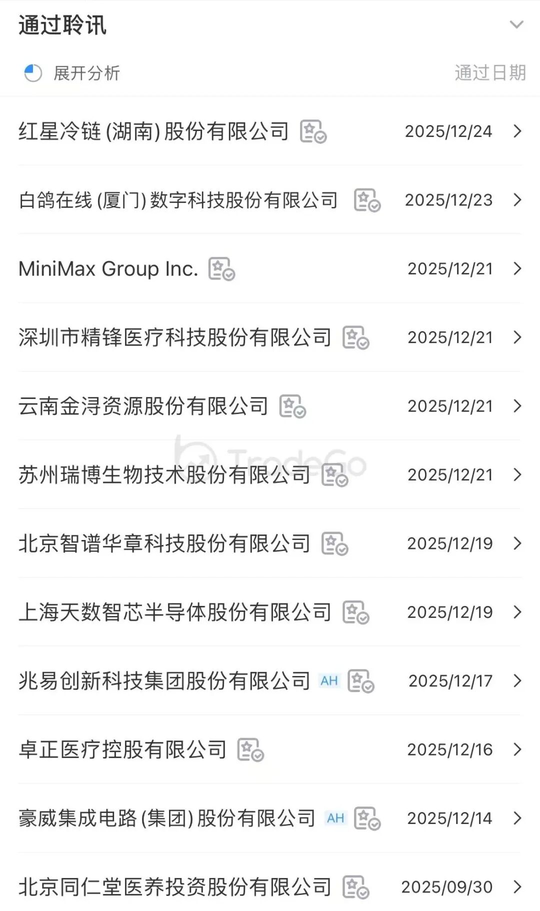 據LiveReport大數據統計,截至2025年12月24日,共有12家公司已經通過聆訊,暫未招股。