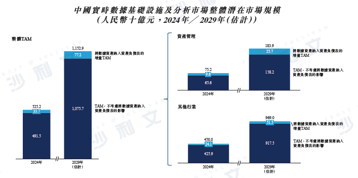 中國整體實時數據基礎設施和分析市場處于萌芽階段,并且迅速擴張。中國實時數據基礎設施和分析市場的整體潛在市場規模于2024年達到人民幣5,252億元。得益于實施將數據資產納入財務狀況表的政策等多種有利因素,預計該整體潛在市場規模將于2029年達到人民幣11,529億元,如下所述: