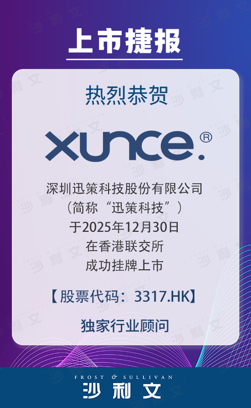 深圳迅策科技股份有限公司(股票代碼:3317.HK )于2025年12月30日成功登陸香港資本市場主板。深圳迅策科技股份有限公司是一家中國實時數據基礎設施及分析解決方案供應商,核心業務是為資產管理等行業提供毫秒到秒級的數據采集、處理、分析與治理的一體化實時數據平臺,支撐投資與業務決策。以資產管理行業起家、技術能力經高復雜場景驗證,并具備將統一實時數據基礎設施能力橫向復制到金融服務、城市管理、制造和電信等行業的能力,同時持續高投入研發、以技術驅動長期競爭力。弗若斯特沙利文(Frost & Sullivan, 以下簡稱“沙利文”)為深圳迅策科技股份有限公司上市提供獨家行業顧問服務,特此熱烈祝賀其成功上市。