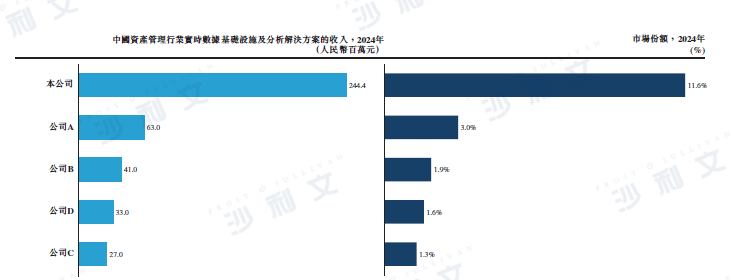 于2024年,公司在中國資產管理行業實時數據基礎設施及分析市場的收入和市場份額均排名第一。