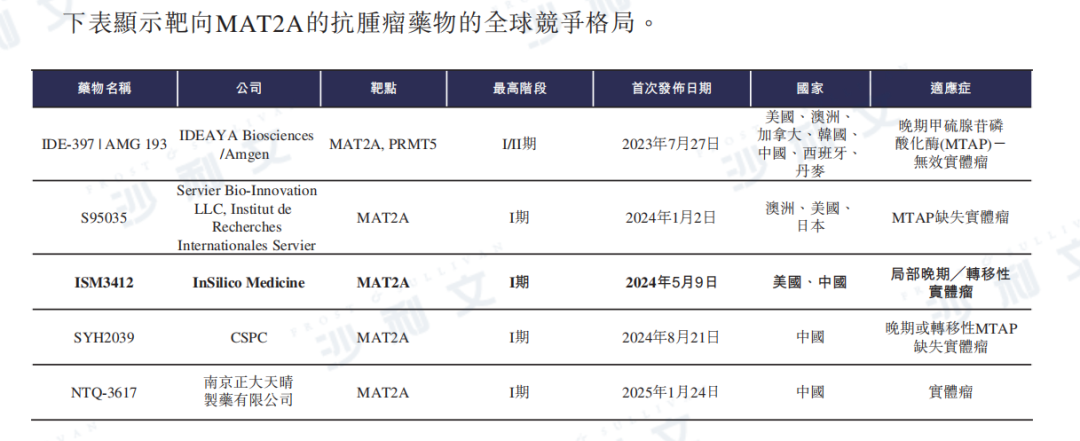 下表列示了靶向MAT2A的抗腫瘤藥物的全球競爭格局。