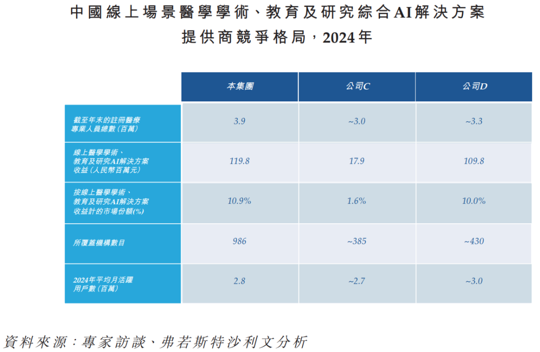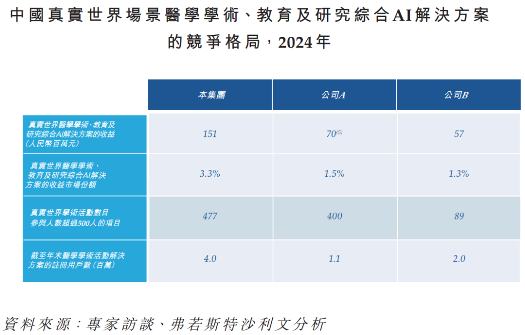 公司于2016年3月21日在新三板掛牌上市,股票代碼836148.NQ,后于2021年9月7日退市。公司是中國領先的AI驅動解決方案提供商,2024年收入2.71億元人民幣,凈利潤0.30億元,毛利率35.70%;2025年前9個月收入1.91億元,凈利潤0.37億元,同比暴漲一倍,毛利率42.27%。LiveReport獲悉,上海萬怡醫學科技股份有限公司Healife Group Co., Ltd.(簡稱“萬怡醫學”)于2026年1月1日首次在港交所遞交上市申請,擬在香港主板上市。公司是中國領先的AI驅動解決方案提供商,致力于賦能醫師的人才發展。根據弗若斯特沙利文的資料,按2024年的可比較收益計,公司在中國的醫學學術、教育及研究的綜合AI解決方案市場中排名第一。公司主要提供兩類通過公司的智能生產力工具由AI驅動的創收解決方案:(i)通過公司的MedEvent平臺交付的醫學學術活動全流程解決方案,旨在促進醫師之間工作流程協調及學術交流;(ii)醫學學習及教育數字解決方案,以通過公司的MedAssistant系統開發及交付的交互式學習套件為特色,并根據醫師的專業、興趣及發展目標量身定制。公司的客戶主要包括:(i)醫學學會/協會及其他學術組織;(ii)醫藥及醫療器械公司。公司主要以基于項目的模式向客戶交付公司的解決方案。截至2024年12月31日止2個年度、2024年及2025年前9個月:收入分別約為人民幣2.39億、2.71億、1.78億、1.91億,2025年前9個月同比+7.21%;毛利分別約為人民幣0.90億、0.97億、0.64億、0.81億,2025年前9個月同比+26.33%;凈利分別約為人民幣0.30億、0.30億、0.18億、0.37億,2025年前9個月同比+108.47%;毛利率分別約為37.90%、35.70%、35.87%、42.27%;凈利率分別約為12.51%、10.96%、9.95%、19.35%。公司收入主要來自AI驅動的兩類核心解決方案,重大部分來自醫學學術活動全流程解決方案,2023年和2024年該業務收入分別為1.27億元和1.51億元,占總營收比例均超50%;醫學學習及教育數字解決方案收入占比相對較小,2023年和2024年分別為1.12億元和1.20億元。根據弗若斯特沙利文(Frost & Sullivan)的報告,2019年至2024年,中國醫學學術、教育及研究解決方案市場從人民幣668億元增至人民幣976億元,期間復合年增長率為7.9%。到2030年,市場規模預計將增至人民幣1795億元,2024年至2030年的復合年增長率為10.7%。2019年至2024年,中國醫學學術、教育及研究綜合AI解決方案市場從人民幣9億元增至人民幣57億元,期間復合年增長率為45.2%。到2030年,中國醫學學術、教育及研究綜合AI解決方案的市場規模預計將增至人民幣339億元,2024年至2030年的復合年增長率為34.8%。中國醫學學術、教育及研究解決方案市場高度分散,大多數企業于2024年的年收益低于人民幣1億元。公司的收益顯著優于同業,建立了明確且巨大的領先優勢。在中國當前的真實世界場景醫學學術、教育及研究綜合AI解決方案提供商中,公司于收益、項目數量及注冊用戶數量等核心市場表現維度占據領先地位。在中國當前的線上醫學學術活動、教育及研究綜合AI解決方案提供商中,公司收益及所覆蓋機構數目等核心市場表現維度占據領先地位。同行業IPO可比公司:梅斯健康(2415.HK)、醫脈通(2192.HK)萬怡醫學的董事會由八名董事組成,包括五名執行董事及三名獨立非執行董事。鞠悅女士(實控人)直接持股55.25%;通過擔任普通合伙人控制員工激勵平臺上海鞠柚(持股15.64%)、上海鞠檸(持股1.71%),合計持股72.60%;18名零散股東(1家公司+17名個人)合計持股0.55%。據LiveReport大數據統計,萬怡醫學中介團隊共計7家,其中保薦人1家,近10家保薦項目數據表現不理想;公司律師共計2家,綜合項目數據表現尚可。整體而言中介團隊歷史數據表現中規中矩。