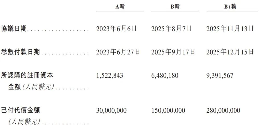 公司上市前經歷了多輪融資,累計融資逾4.6億元人民幣。在2025年12月的B+輪最新融資中,公司每股成本為人民幣29.81元,投后估值約為35.0億人民幣。