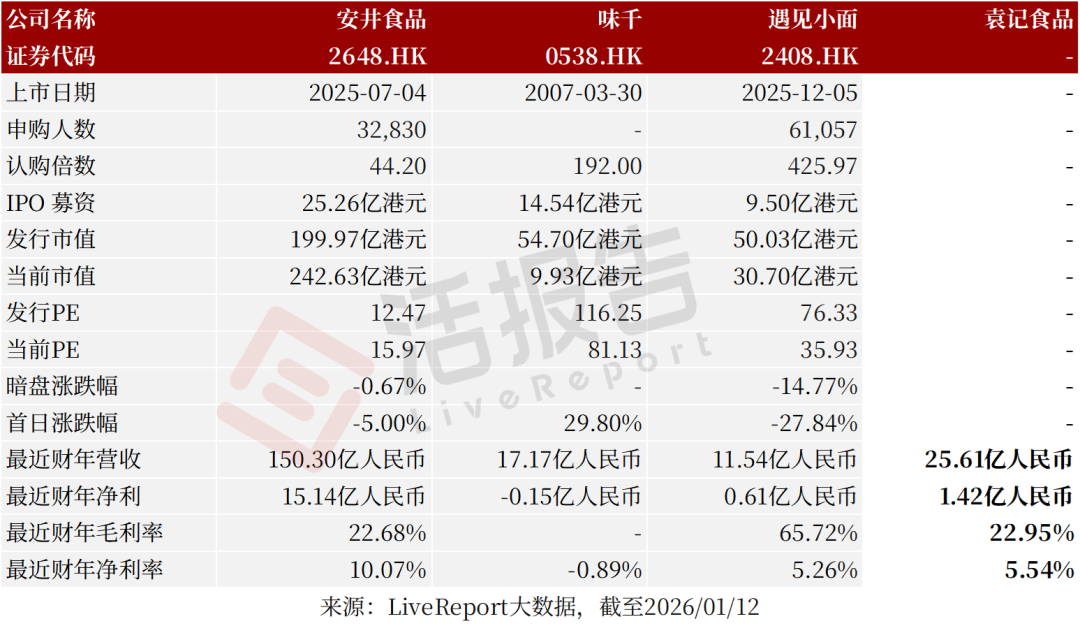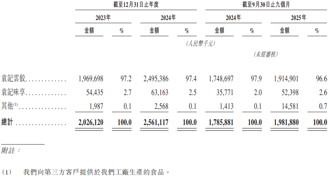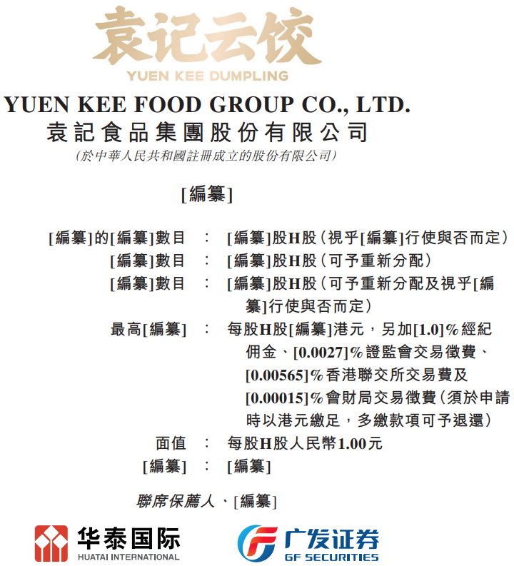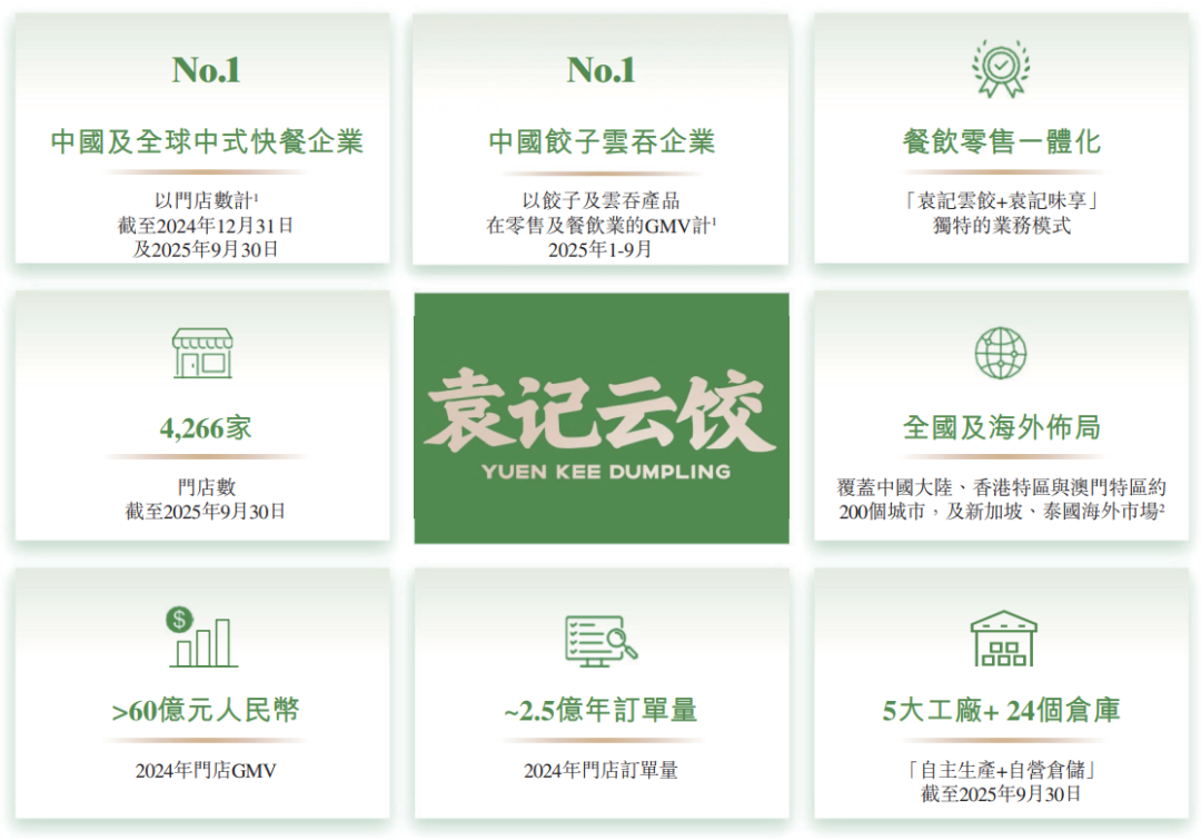 2026年1月12日,袁記食品首次向港交所遞交招股書,擬在香港主板上市,聯席保薦人為華泰國際、廣發證券。公司是中式快餐企業,2024年收入25.61億元人民幣,同比增長兩成,凈利潤1.42億元,毛利率22.95%;2025年前9個月收入19.82億元,凈利潤1.42億元,毛利率24.75%。LiveReport獲悉,袁記食品集團股份有限公司YUEN KEE FOOD GROUP CO., LTD.(簡稱“袁記食品”)于2026年1月12日首次在港交所遞交上市申請,擬在香港主板上市。截至2025年9月30日,按門店數量計,公司是中國及全球最大的中式快餐企業,以餐飲品牌袁記云餃為核心,確立“手工現包現煮”為核心運營理念,為消費者提供熟食及生食形式的餃子、云吞及相關產品。公司在工廠生產(i)餡料、(ii)面皮及(iii)其他食品,并將其出售予加盟店。各種店鋪形式的加盟店均使用公司銷售的原材料,在門店手工現包,以堂食、熟食及生食的外帶與外賣形式銷售給消費者。公司負責提供品牌、供應鏈、數字化及運營支持,而加盟商負責前端運營及銷售。公司亦運營少量直營店,主要目的是積累運營經驗并提升袁記云餃品牌的知名度。對于公司袁記味享品牌的零售業務模式,公司在工廠生產標準化的預包裝餃子及云吞,并主要通過即時零售渠道、超市及分銷商銷售。公司被視為具有最高性價比的中式快餐品牌,“手工現包”“價格實惠”“口味好吃”是消費者選擇公司的三大理由。袁記云餃提供多元化產品組合,涵蓋五個核心品類:餃子、云吞、面條、小吃及飲品,截至2025年9月30日袁記云餃在全國范圍內的SKU約350個。在業績記錄期,公司推出了超過200個新SKU。公司的招牌餃子及云吞系列以嚴選食材、“手工現包現煮”制作、皮薄餡足及多層次口感見稱,構成公司價值主張的基礎,在業績記錄期占公司的門店GMV超過80%。自2023年1月1日至2025年9月30日,公司的門店總數從1990家增加至4266家,其中大部分為加盟店。在業績記錄期,公司超過95%的收入來自公司的門店網絡。公司實現全國覆蓋,同時保持針對不同地區定制的本地化運營策略。截至2025年9月30日,公司的門店網絡覆蓋全國32個省份、自治區、特別行政區及直轄市,遍布超過200個城市。同時,公司于2024年末在新加坡開設首家海外門店,并于2025年在海外持續拓店。截至2025年9月30日,公司在新加坡運營5家海外門店,標志著公司穩步邁出了全球擴張的一步,并將餃子云吞的中華美食文化推向新的消費群體。截至2024年12月31日止2個年度、2024年及2025年前9個月:收入分別約為人民幣20.26億、25.61億、17.86億、19.82億,2025年前9個月同比+10.97%;毛利分別約為人民幣5.25億、5.88億、4.40億、4.90億,2025年前9個月同比+11.56%;凈利分別約為人民幣1.67億、1.42億、1.19億、1.42億,2025年前9個月同比+18.84%;毛利率分別約為25.92%、22.95%、24.62%、24.75%;凈利率分別約為8.25%、5.54%、6.69%、7.17%。公司收入主要來自餐飲服務與零售預包裝食品兩大板塊,重大部分來自袁記云餃品牌相關業務,2023年和2024年該品牌收入占總營收比例分別達97.2%和97.4%,核心是向加盟商銷售食材及提供運營支持,涵蓋堂食、外帶、外賣等多場景消費;袁記味享品牌的預包裝食品收入占比相對較小,2023年和2024年分別為2.7%和2.5%;向第三方客戶提供工廠生產食品的其他業務收入占比最小,不足0.1%,屬于補充性收入來源。同行業IPO可比公司:安井食品(2648.HK)、味千(0538.HK)、遇見小面(2408.HK)袁記食品的董事會由八名董事組成,包括五名執行董事及三名獨立非執行董事。袁亮宏先生直接持股22.23%;通過持有袁記投資99%股權,間接控制袁記投資所持39.10%公司股份,合計控制約61.33%權益;袁建軍先生(袁亮宏先生父親)通過持有袁記投資1%股權,間接持股0.39%;佛山探未知(激勵持股平臺)直接持股8.43%(袁先生持股81.12%并控制表決權);佛山心向遠、佛山越山河、佛山袁云餃(員工激勵平臺)各直接持股4.26%(均由袁先生控制表決權);公司的股東還包括黑蟻資本、啟承資本、鳴鳴很忙副董事長趙定、益海嘉里等。