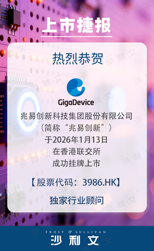 兆易創新科技集團股份有限公司(股票代碼:3986.HK)于2026年1月13日成功登陸香港資本市場主板。公司是全球領先的集成電路設計廠商,公司構建了覆蓋存儲芯片、微控制器(MCU)、傳感器等多條產品線的業務矩陣。弗若斯特沙利文(Frost & Sullivan, 以下簡稱“沙利文”)為兆易創新科技集團股份有限公司上市提供獨家行業顧問服務,特此熱烈祝賀其成功上市。
