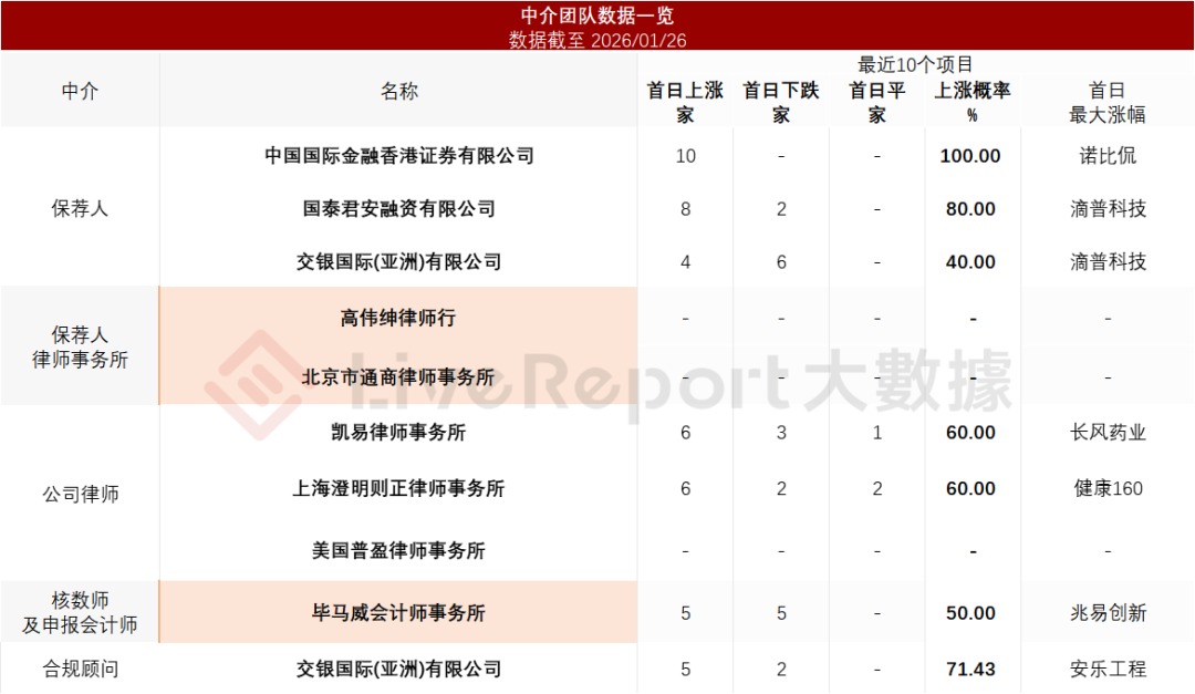 公司上市前經歷了多輪融資,累計融資39.7億元人民幣。在2025年5月的C輪最新融資中,公司的投后估值約為106.3億人民幣。據LiveReport大數據統計,愛芯元智中介團隊共計10家,其中保薦人3家,近10家保薦項目數據表現穩妥;公司律師共計3家,綜合項目數據表現普通。整體而言中介團隊歷史數據表現中規中矩。