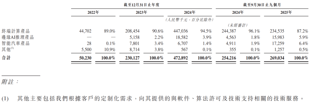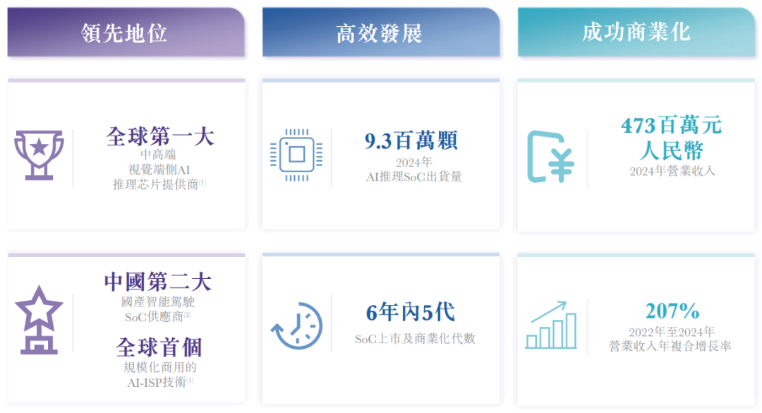 2026年1月25日,愛芯元智通過港交所聆訊,擬在香港主板上市,聯席保薦人為中金、國泰君安、交銀國際。公司是人工智能推理系統芯片(SoC)的供應商,2024年收入4.73億元人民幣,同比增長一倍,凈虧損9.04億元,同比擴大兩成,毛利率21.02%;2025年前9個月收入2.69億元,凈虧損8.56億元,同比擴大兩成,毛利率21.17%。LiveReport獲悉,愛芯元智半導體股份有限公司Axera Semiconductor Co., Ltd.(簡稱“愛芯元智”)于2026年1月25日通過港交所聆訊,擬在香港主板上市。此前為秘密遞表。公司是人工智能(“AI”)推理系統芯片(“SoC”)的供應商,專注為邊緣計算與終端設備AI應用打造高性能感知與計算平臺。公司SoC產品的核心技術是愛芯通元(Axera Neutron)混合精度神經網絡處理器(“NPU”),這是一種通過先進混合精度計算來實現良好AI推理性能的專用處理架構,對于量化模型的部署至關重要,能在邊緣與終端設備上實現AI推理。且不斷擴張的智能汽車產業正在推動這項技術加速普及。與混合精度NPU相輔相成的是公司的愛芯智眸(Axera Proton)AI-ISP,全球首款規模商業化的AI圖像信號處理器。愛芯智眸AI-ISP是一款先進的圖像信號處理引擎,能即時以像素級別優化視覺數據,確保即使在嚴苛條件下也能提供高品質成像。結合公司的其他技術,如Pulsar2工具鏈與軟件開發工具包(“SDK”),這些創新解決了AI推理的基本“計算”需求,以及創造實際價值的關鍵“感知”應用。公司采用無晶圓廠模式,并僅專注于芯片設計及銷售。公司的專有技術平臺整合通用架構,能夠實現IP核在多種應用中的高效重復使用。此可擴展方法使公司能夠靈活、快速地開發、商業化及迭代公司的SoC。根據招股書的數據,按2024年出貨量計,公司是全球第一大中高端視覺端側AI推理芯片提供商。根據同一資料來源,公司在全球視覺端側AI推理芯片市場處于領先地位,2024年排名前五。根據招股書的數據,公司的愛芯智眸AI-ISP是全球首個實現規模化商用的AI-ISP解決方案,標志著計算機視覺領域一大重要里程碑。2024年,公司的AI推理SoC出貨量實現9.3百萬顆。截至2025年9月30日,公司已獨立開發五代SoC并實現其商業化,涵蓋數十種類型,已在視覺終端計算、智能汽車和邊緣AI推理應用中實現大規模生產。截至2024年12月31日止3個年度、2024年及2025年前9個月:收入分別約為人民幣0.50億、2.30億、4.73億、2.54億、2.69億,2025年前9月同比+5.83%;毛利分別約為人民幣0.13億、0.59億、0.99億、0.54億、0.57億,2025年前9月同比+6.43%;研發分別約為人民幣-4.46億、-5.15億、-5.89億、-4.50億、-4.14億,2025年前9月同比-8.02%;凈利分別約為人民幣-6.12億、-7.43億、-9.04億、-6.91億、-8.56億,2025年前9月同比+23.83%;毛利率分別約為25.87%、25.74%、21.02%、21.05%、21.17%;研發費用率分別約為887.12%、223.87%、124.54%、177.00%、153.83%;凈利率分別約為 -1217.55%、-322.90%、-191.21%、-271.83%、-318.06%。公司2024年及2025年前9個月收入穩步增長,毛利同步提升,研發投入保持高位,仍持續處于虧損狀態。公司收入主要來自AI推理系統芯片(SoC)銷售,重大部分來自視覺終端計算及邊緣計算相關SoC,2024年二者業務收入占總營收比例分別達94.5%和3.9%。截至2025年9月30日,公司經營活動現金流為-5.49億,期末現金約為3.40億。同行業IPO可比公司:瑞芯微(603893.SH)、星辰科技(301536.SZ)、富瀚微(300613.SZ)愛芯元智的董事會由十二名董事組成,包括四名執行董事、四名非執行董事及四名獨立非執行董事。QIU Xiaoxin博士,合計控制持股約22.76%,為單一最大股東;