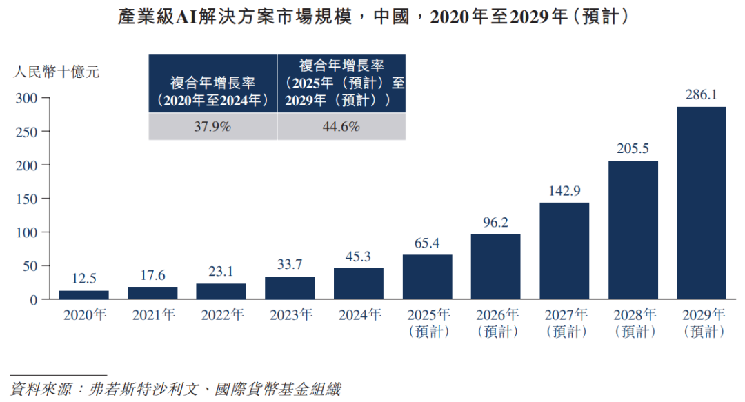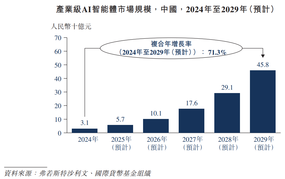 根據弗若斯特沙利文(Frost & Sullivan)的報告,2020-2029年,中國產業級AI解決方案市場呈現爆發式增長態勢。市場整體規模從2020年的人民幣125億元擴張至2024年的人民幣453億元,期間復合年增長率為37.9%。未來,預計市場仍將保持44.6%的復合年增長率,增長至2029年的人民幣2861億元,發展勢頭強勁。從細分市場來看,2024年以圖為核心的AI解決方案領域市場規模約為人民幣100億元。就競爭格局而言,該市場擁有約30名參與者,包括大型互聯網公司及成長迅速的科技公司。2024年,公司按收入計位列前五大公司之一,市場份額分別為4.7%。中國產業級AI智能體市場規模將在2024年到2029年間實現爆發式增長,從2024年的約人民幣31億元躍升至2029年的人民幣458億元,期間復合年增長率高達71.3%。2024年,中國產業級AI智能體市場出現明顯的頭部集中趨勢。前五名公司共占據了市場份額總額的58.1%。公司以人民幣1億元的收入和2.8%的市場份額排名第五。在跨行業產業級AI智能體解決方案供應商領域,按收入計,公司排名第一。同行業IPO可比公司:范式智能、明略科技-W、滴普科技。海致科技的董事會由十一名董事組成,包括四名執行董事、三名非執行董事及四名獨立非執行董事。其他32名股東合計持股56.92%(其中中國互聯網投資持有3.94%、高瓴持有2.55%)。公司上市前經歷了多輪融資,累計融資逾15.1億元人民幣。在2024年12月的E-2輪最新融資中,公司的投后估值約為33億人民幣。據LiveReport大數據統計,海致科技中介團隊共計10家,其中保薦人3家,近10家保薦項目數據表現普通;公司律師共計2家,綜合項目數據表現尚可。整體而言中介團隊歷史數據表現中規中矩。