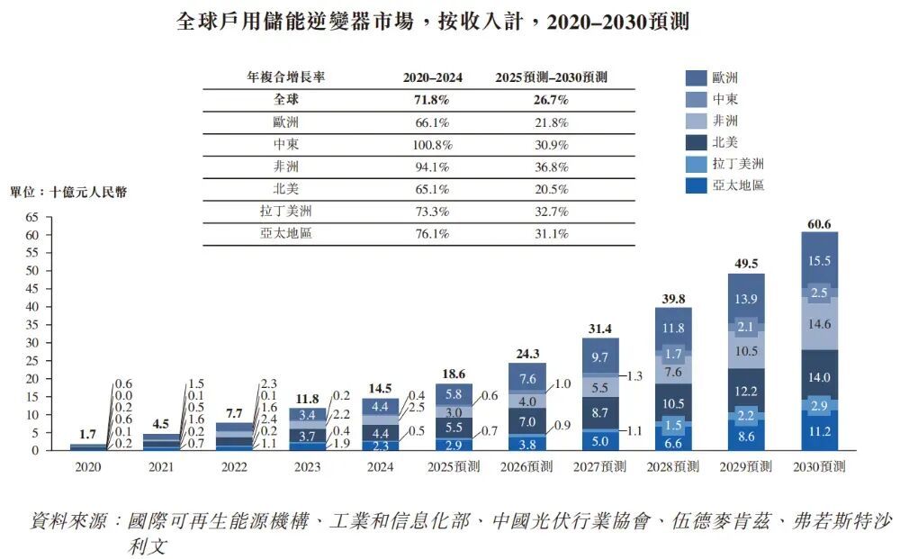 2026年1月27日,德業股份(605117.SH)首次向港交所遞交招股書,擬在香港主板上市,聯席保薦人為中金、中信和招銀。公司于2021年4月在A股上交所上市,截至2026年1月27日,公司總市值約為857.5億元人民幣。公司是一家全球領先的光儲產品提供商,2024年收入112.06億元,凈利潤29.60億元,毛利率38.63%。2025年前9月收入88.46億元,凈利潤23.46億元,毛利率38.50%。2025年前三季度公司整體增長穩定。公司是一家全球領先的光儲產品提供商,致力于提供全面的光伏和儲能產品,為全球用戶帶來清潔、可持續的綠色能源。公司的核心增長領域為新能源業務,聚焦于儲能逆變器、光伏逆變器、儲能電池包產品,同時,公司在除濕機、太陽能空調、熱交換器等環境電器業務領域長久深耕,戰略多元化的產品組合帶來了業務的增長與韌性。在全球新能源轉型大勢的驅動下,公司構建起覆蓋戶用、工商業場景的產品矩陣,以滿足不斷變化的市場需求。公司多樣化及多用途的產品銷往六大洲的150多個國家和地區,公司已在多個領域取得顯著成就。根據弗若斯特沙利文的數據,以2024年銷售金額計,公司為全球第一大戶用儲能逆變器提供商。在進行設備管理與數據分析智能云平臺的支持下,公司構建了多元化業務體系,充分發揮新能源業務與環境電器業務的協同效應。公司的產品價值鏈貫穿從柔性發電到精準用電的全過程。截至2024年12月31日止2個年度、2024及2025年前9個月:收入分別約為人民幣74.80億、112.06億、80.16億、88.46億,2025年前9月同比+10.36%;毛利分別約為人民幣29.29億、43.29億、32.02億、34.05億,2025年前9月同比+6.34%;凈利分別約為人民幣17.91億、29.60億、22.40億、23.46億,2025年前9月同比+4.73%;毛利率分別約為39.16%、38.63%、39.95%、38.50%;凈利率分別約為23.94%、26.42%、27.94%、26.51%。截至2025年9月30日,公司賬上現金約44.02億元,應收賬款約18.36億元,短期貸款12.94億元,長期借款0.89億元。2025年前9月經營現金流約26.62億元。根據弗若斯特沙利文(Frost & Sullivan)的報告,全球戶用儲能系統市場的市場規模由2020年的34億元人民幣增至2024年的502億元人民幣,復合年增長率達95.4%。預計市場規模將持續擴大,從2025年的627億元人民幣增長至2030年的2,157億元人民幣,對應復合年增長率為28.0%。在全球戶用儲能系統市場中,領先企業展現相對高度的市場集中度,競爭態勢持續活躍。中國企業在市場中占據重要地位。公司在全球戶用儲能系統市場主要參與者按收入的排名中為第五。根據弗若斯特沙利文(Frost & Sullivan)的報告,全球戶用儲能逆變器市場規模將由2020年的人民幣17億元增長至2024年的人民幣145億元,復合年增長率達71.8%。預計市場規模將由2025年的人民幣186億元持續增長至2030年的人民幣606億元,對應復合年增長率為26.7%。以2024年收入計算,公司市占率為24.4%排名第一。董事會將由九名董事組成,包括四名執行董事、一名非執行董事及四名獨立非執行董事。張和君先生直接持股約22.28%,通過艾思睿投資間接持股約35.21%,通過亨麗創業投資間接持股約1.60%,通過其配偶陸亞珠女士間接持股約0.70%,通過德派創業投資間接持股約0.51%,合計持股約60.30%。張和君先生、艾思睿投資、亨麗創業投資、陸亞珠女士及德派創業投資形成公司一組控股股東。據LiveReport大數據統計,德業股份中介團隊共計11家,其中保薦人3家,近10家保薦項目數據表現尚可;公司律師共計3家,綜合項目數據表現有待提升。整體而言中介團隊歷史數據表現中規中矩。(本文首發于活報告公眾號,ID:livereport)