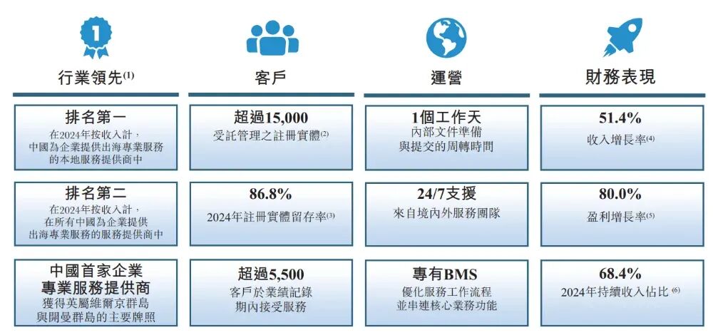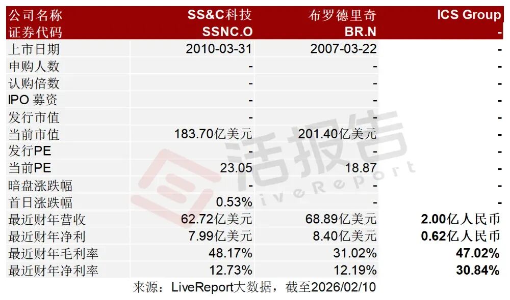 2026年2月10日,ICS集團首次向港交所遞交招股書,擬在香港主板上市,獨家保薦人為農銀國際。公司是一家領先且快速增長的企業出海專業服務提供商,2024年收入2億元,凈利潤0.62億元,毛利率47.02%;2025年前9個月收入2.1億元,凈利潤0.66億元,毛利率46.56%。公司是一家領先且快速增長的企業出海專業服務提供商,致力于助力中國企業海外拓展。公司主要為中國企業提供三大業務板塊的綜合企業專業服務:(i)核心業務—企業服務;(ii)基金行政管理服務;及(iii)財務報告與稅務服務。根據弗若斯特沙利文研究報告的資料,按2024年收入計,公司是中國企業出海專業服務行業最大的本地服務提供商,市場占有率達10.5%。同時,公司在全球所有中國企業出海專業服務提供商中,按2024年收入計排名第二,市場占有率相同,足以證明公司的品牌認可度高及執行能力卓越。公司是中國首家且唯一一家為中國企業出海提供專業服務而持有全牌照的提供商,包括:(i)英屬維爾京群島的第三類注冊代理牌照;(ii)開曼群島的企業服務牌照;及(iii)香港的信托或公司服務提供者牌照(統稱“主要牌照”),涵蓋英屬維爾京群島、開曼群島及香港(統稱“重要境外司法轄區”)。公司通過提供:(i)企業服務,公司的核心業務;(ii)基金行政管理服務;(iii)財務報告與稅務服務產生收入。在業績記錄期內,公司大部分收入來源于為中國企業客戶在重要境外司法轄區設立和維護企業實體。截至2024年12月31日止2個年度、2024及2025年前9個月:收入分別約為人民幣1.32億、2.00億、1.42億、2.10億,2025年前9月同比+47.93%;毛利分別約為人民幣0.61億、0.94億、0.63億、0.98億,2025年前9月同比+55.48%;凈利分別約為人民幣0.34億、0.62億、0.39億、0.66億,2025年前9月同比+68.91%;毛利率分別約為45.80%、47.02%、44.30%、46.56%;凈利率分別約為25.95%、30.84%、27.48%、31.38%。根據弗若斯特沙利文(Frost&Sullivan)的報告,全球企業專業服務市場持續穩步增長。根據弗若斯特沙利文的資料,該市場規模由2020年的5.3兆美元增至2024年的6.3兆美元,復合年增長率為4.5%。在數字轉型推動及對專業外包服務需求日益上升的帶動下,預計至2029年市場規模將達8.3兆美元。中國企業專業服務市場整體規模由人民幣9.4兆元增至人民幣12.0兆元,年均復合增長率高于全球水平。未來五年,隨著企業在降本增效及專業外包方面的需求日益增加,加上中國經濟持續發展,預計至2029年市場規模將達人民幣16.1兆元。中國企業出海專業服務市場目前仍以國際服務供應商為主導。2024年,以來自境內客戶的收入計算,該市場的CR5(五大企業行業集中度)為36.9%。同行業IPO可比公司:SS&C(SSNC.O)、科技布羅德里奇(BR.N)。董事會由五名董事組成,包括兩名執行董事和三名獨立非執行董事。李丹丹女士通過Maple Leaves和DDTT間接持有公司約94.4%股份;Zhang Wei先生通過Westeatary間接持有公司約5.6%股份。據LiveReport大數據統計,ICS Group中介團隊共計8家,其中保薦人1家,近10家保薦項目數據表現有待提升;公司律師共計3家,綜合項目數據表現不理想。整體而言中介團隊歷史數據表現不足。(本文首發于活報告公眾號,ID:livereport)