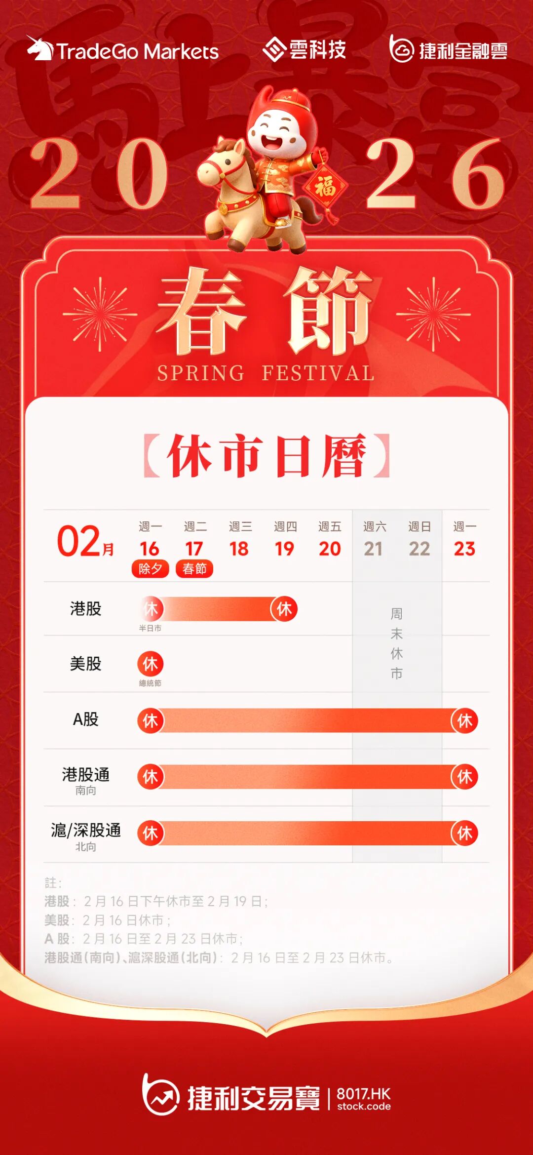 🇭🇰港股通(南向):2月16日至2月23 日休市