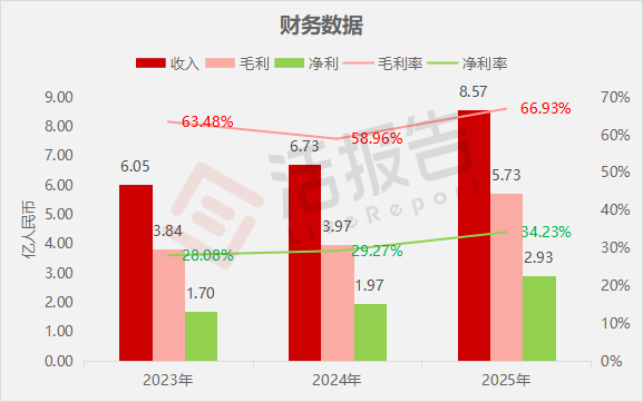 凈利分別約為人民幣1.70億、1.97億、2.93億,2025年同比+48.82%;