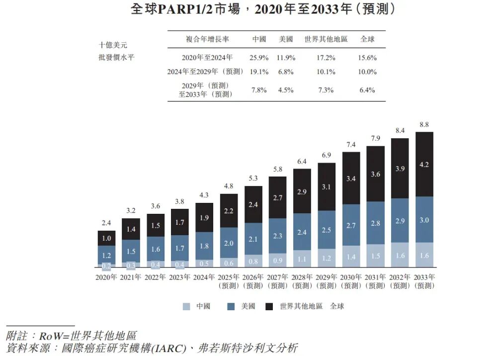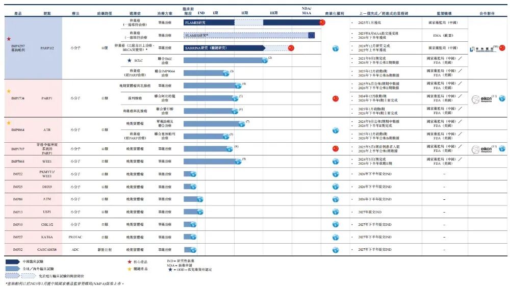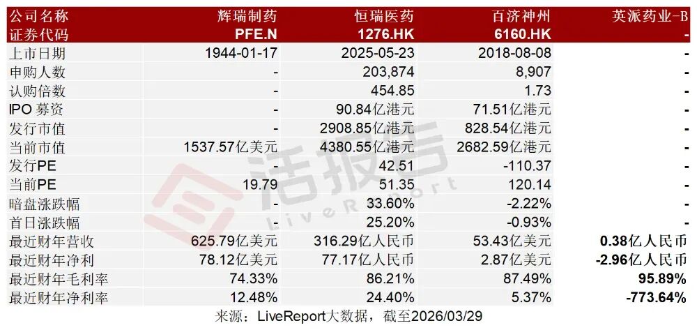 2026年3月27日,英派藥業-B第2次向港交所遞交招股書,擬在香港主板上市,聯席保薦人為高盛、中金。公司是一家處于商業化階段的生物技術公司,2024年收入0.34億元,凈虧損2.55億元,毛利率95.36%。2025年收入0.38億元,凈虧損2.96億元,毛利率95.89%。公司的核心產品塞納帕利已于2025年1月啟動商業化。公司成立于2009年,是一家處于商業化階段的生物技術公司,致力于在全球范圍內推進基于合成致死(synthetic lethality)機制的精準抗癌療法,打造創新療法,以滿足癌癥患者未被滿足的醫療需求。截至最后實際可行日期,公司的研發管線包含1款商業化階段藥物、4款臨床階段藥物及7款IND前階段藥物,包括覆蓋PARP1/2、PARP1、ATR、WEE1、PKMYT1/WEE1、DHX9、ATM、USP1及CHK1/2等關鍵合成致死靶點的小分子抑制劑,以及新型ADC及蛋白降解劑候選藥物等新興療法。塞納帕利為公司的核心產品,是一種PARP1/2抑制劑,已在中國獲批用于卵巢癌“全人群”的一線維持治療。塞納帕利已于2025年1月在中國獲得監管批準并啟動商業化。在歐洲,歐洲藥品管理局于2025年8月受理了公司的上市許可申請,標志著關鍵的監管里程碑。IMP1734是高活性的新一代PARP1選擇性抑制劑,目前正通過全球I/II期試驗評估其單藥治療及聯合用藥治療晚期實體瘤的效果。公司預計將于2026年下半年完成該等隊列的劑量爬坡部分。公司與Eikon Therapeutics達成全球合作以推進IMP1734及IMP1707。IMP9064是在中國首個進入臨床階段的ATR選擇性抑制劑,目前正通過全球I/II期試驗評估其單藥治療及聯合治療用于晚期實體瘤的效果。II期階段試驗正在進行中,公司進一步探索IMP9064單藥治療晚期子宮內膜癌的療效與安全性,預期2026年下半年完成試驗。IMP1707是一種能穿透中樞神經系統(CNS)的PARP1選擇性抑制劑,更是少數能夠穿過血腦屏障的PARP1選擇性抑制劑之一。公司亦擁有覆蓋廣泛臨床階段及IND前階段的產品,包括靶向WEE1、PKMYT1/WEE1、DHX9、ATM、USP1及CHK1/2等關鍵合成致死靶點的藥物,以及新型ADC及降解劑候選藥物等新興療法。·科學驅動的靶點選擇:通過新型機制識別可改善患者預后的研發機會;·新興技術平臺:包括用于ADC(尤其是基于合成致死機制的雙載荷ADC)連接子 - 載荷平臺,以及涵蓋蛋白降解靶向嵌合體(PROTAC)與分子膠的靶點降解劑平臺,其共同支持公司以多維度方式實現腫瘤靶點結合。收入分別約為人民幣0.34億、0.38億,2025年同比+14.02%;毛利分別約為人民幣0.32億、0.37億,2025年同比+14.65%;研發分別約為人民幣-1.95億、-1.84億,2025年同比-5.71%;凈利分別約為人民幣-2.55億、-2.96億,2025年同比+16.16%;研發費用率分別約為580.70%、480.18%;凈利率分別約為-759.40%、-773.64%。截至2025年12月31日,公司賬上現金約2.59億元,應收賬款約0.07億元。2025年經營現金流約-0.96億元。根據弗若斯特沙利文(Frost & Sullivan)的報告,于2024年,全球PARP1/2市場規模達到43億美元。預計市場規模將于2029年擴大至69億美元,預計2024年至2029年的復合年增長率為10.0%,并于2033年年進一步增至88億美元,2029年至2033年的復合年增長率為6.4%。截至最后實際可行日期,塞納帕利為在中國獲批的三種PARP1/2抑制劑之一,用于卵巢癌“全人群”的一線維持治療,而“全人群”是卵巢癌的最大潛在細分市場。公司已自主發現并開發出全球最全面、最先進的合成致死產品組合之一,并為全球僅有三家同時擁有商業化階段PARP1/2抑制劑及臨床階段下一代PARP1選擇性抑制劑的企業之一。輝瑞制藥(PFE.N)、恒瑞醫藥(1276.HK)、百濟神州(6160.HK)公司董事會由九名董事組成,包括三名執行董事、三名非執行董事及三名獨立非執行董事。公司執行董事兼首席執行官蔡遂雄博士直接持股約3.60%;執行董事、常務副總裁兼首席科學官田野博士直接持股約3.60%;雇員激勵平臺(包括萬泉島、千溪山及Boundless)持股約7.74%;施毅博士通過LAV USD(包括LAV Innovation、LAV Enterprise、LAV Impetus及LAV Integra)持股約15.62%;上海禮頤(包括上海禮瀚、蘇州禮瑞、蘇州禮康、上海禮灝及蘇州禮潤)持股約13.91%;華嶺(包括華嶺智新、光谷生物城華嶺、China Summit Capital及Homeric Summit Capital)持股約5.34%;公司上市前經歷了多輪融資,累計融資約15億元人民幣。在2024年10月的D++輪最新融資中,公司的投后估值約為32.97億人民幣。據LiveReport大數據統計,英派藥業中介團隊共計9家,其中保薦人2家,近10家保薦項目數據表現尚可;公司律師共計2家,綜合項目數據表現普通。整體而言中介團隊歷史數據表現中規中矩。(本文首發于活報告公眾號,ID:livereport)