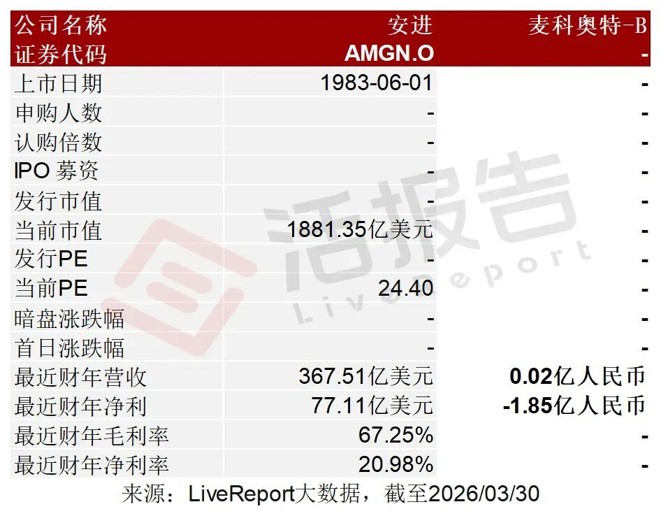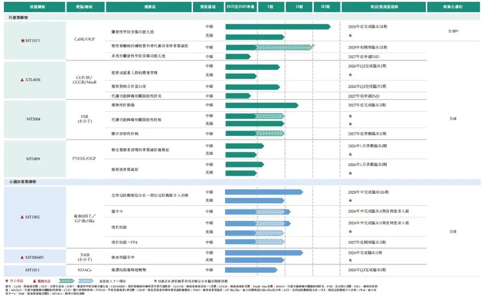 2026年3月31日,麥科奧特-B第2次向港交所遞交招股書,擬在香港主板上市,聯席保薦人為建銀、招商。公司是一家生物技術公司,2024年收入0.04億元,凈虧損1.57億元。2025年收入0.02億元,凈虧損1.85億元。公司是一家生物技術公司,專注于發現、開發及商業化用于治療代謝性疾病以及心腦血管疾病的雙╱多特異性肽類藥物。公司已自主開發由一項核心產品及其他六項候選產品組成的產品管線。公司的核心產品MT1013是全球首創的雙靶點受體激動劑多肽藥物,可同時靶向CaSR及OGP受體。MT1013主要為治療SHPT而開發,并計劃擴展至包括CKD-MBD伴骨質疏松及未接受透析的SHPT在內的額外適應癥。截至最后實際可行日期,MT1013已完成其用于治療SHPT的II期臨床試驗(MT1013-II-C01及MT1013-II-C03),并已開始一項以西那卡塞作為活性對照藥物的III期臨床試驗,且計劃招募的424名患者中已有392名入組。預計公司的MT1013將于2028年初商業化,公司將實行雙軌商業化策略:在國內透過與第三方合約銷售組織(CSO)合作,在國際上則透過授權合作伙伴關系。公司的關鍵產品XTL6001是在中國及美國均獲得新藥臨床研究批準并進入臨床試驗階段的GLP-1R/GCGR/MasR三重靶點激動劑。XTL6001已就在中國及美國治療肥胖或超重人群的體重管理獲得新藥臨床研究批準。截至最后實際可行日期,LPLV已發生且數據庫鎖定已完成。公司的關鍵產品MT1002是全球首個凝血因子II和GP IIb/IIIa雙靶點肽拮抗劑,主要針對ACS-PCI手術、腦卒中、腎透析抗凝和HD-PF4等抗凝抗栓領域的臨床需求。截至最后實際可行日期,MT1002已在中國及美國成功完成用于治療ACS-PCI的I期臨床試驗。一項II期臨床試驗正在中國進行中,其中劑量探索階段已完成,而擴展階段正在進行中。公司的關鍵產品MT200605是一種注射用神經保護劑。截至最后實際可行日期,MT200605已在中國及美國成功完成I期臨床研究。一項II期臨床試驗正在中國進行中,360名受試者已完成入組。公司已建立四大核心技術平臺,包括:(i)雙╱多特異性肽及基于肽的大分子技術平臺、(ii)計算機輔助肽設計平臺、(iii)口服肽遞送平臺及(iv)成藥性評價平臺。其他收入分別約為人民幣0.04億、0.02億,2025年同比-42.50%;研發分別約為人民幣-1.07億、-1.30億,2025年同比+21.55%;凈利分別約為人民幣-1.57億、-1.85億,2025年同比+17.91%;截至2025年12月31日,公司賬上現金約0.81億元,預付款及其他應收賬款約0.24億元,短期貸款0.48億元。2025年經營現金流約-1.37億元。根據弗若斯特沙利文(Frost & Sullivan)的報告,自2019年至2021年,中國SHPT藥物市場規模由人民幣15億元增至人民幣28億元,增長迅速。然而,隨著SHPT治療藥物仿制藥版本的相繼推出以及國家集中采購藥品的實施,中國SHPT藥物市場規模至2024年已降至人民幣22億元。預計到2030年,市場規模將達到人民幣55億元,到2035年將達到人民幣141億元,期間復合年增長率分別為16.4%及20.5%。截至最后實際可行日期,有兩款CaSR激動劑藥物獲FDA批準,有三款CaSR激動劑藥物獲國家藥監局批準。截至最后實際可行日期,全球有五款用于SHPT的CaSR激動劑候選藥物處于臨床階段。公司董事會將由九名董事組成,包括兩名執行董事、四名非執行董事及三名獨立非執行董事。王冰博士,王梅博士及西安眾瑞構成公司的控股股東,分別直接持有公司40.56%、6.60%及5.48%的權益。公司上市前經歷了多輪融資,在2025年的D輪最新融資中,公司的投后估值約為26.36億人民幣。據LiveReport大數據統計,麥科奧特-B中介團隊共計9家,其中保薦人2家,近10家保薦項目數據表現良好;公司律師共計2家,綜合項目數據表現中規中矩。整體而言中介團隊歷史數據表現尚可。(本文首發于活報告公眾號,ID:livereport)